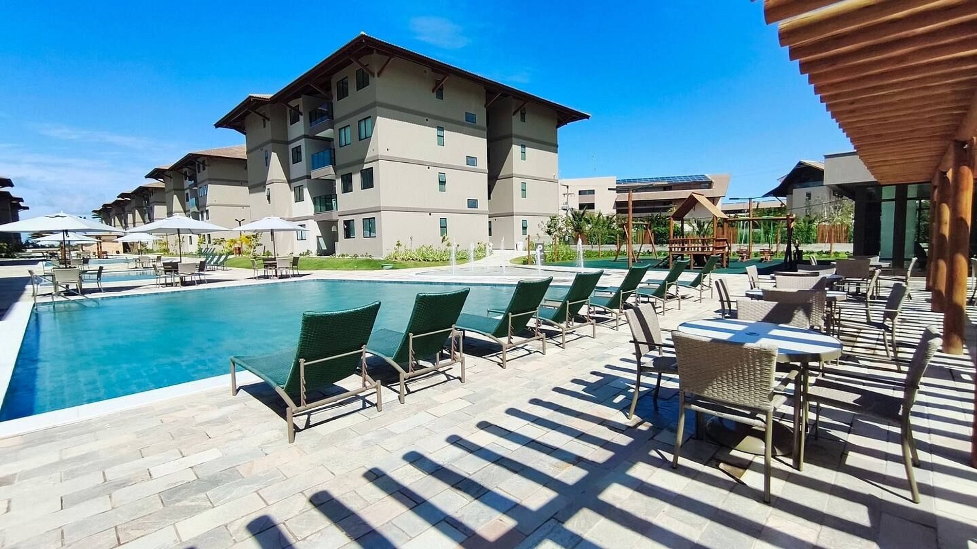 El condominio frente al mar proporciona una experiencia completa con piscinas, gimnasio, sala de juegos infantiles, tienda de conveniencia, salón de juegos, espacio gourmet y acceso directo a la paradisíaca playa de Muro Alto.
