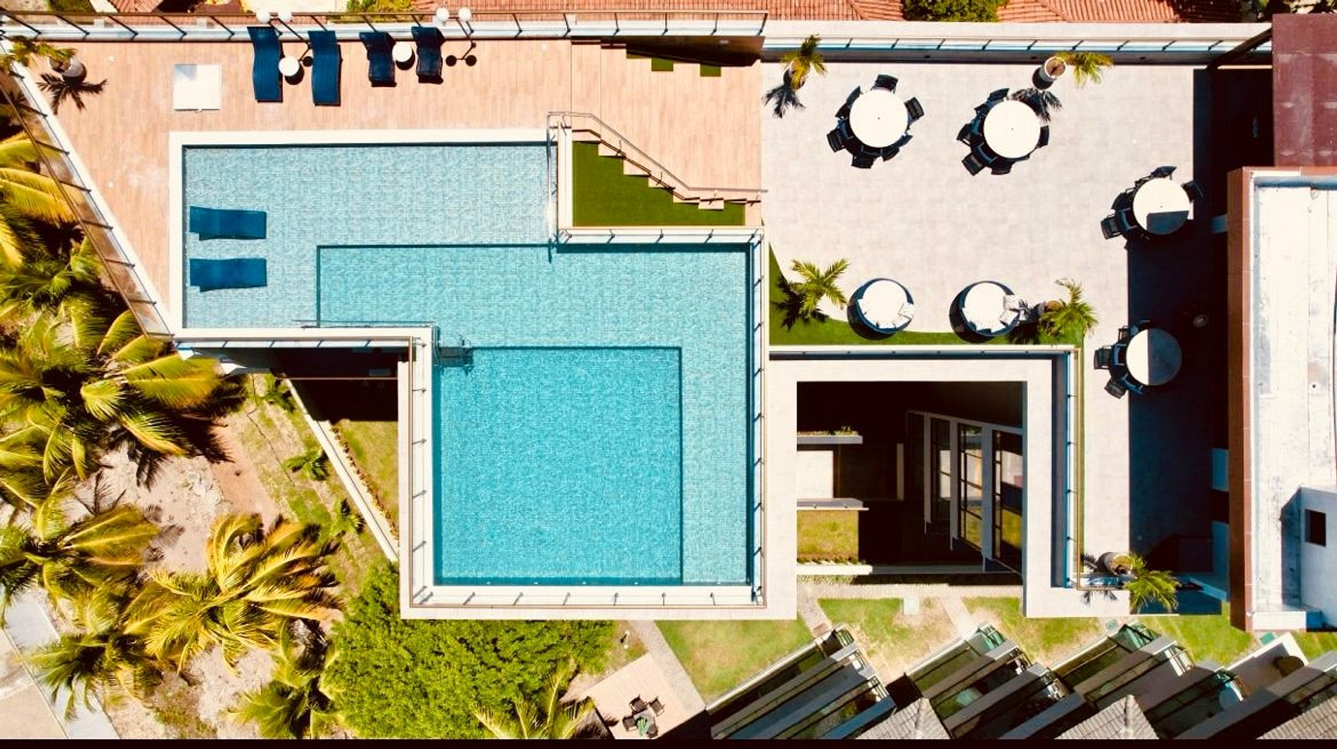 Rooftop com piscina de três níveis e prainha